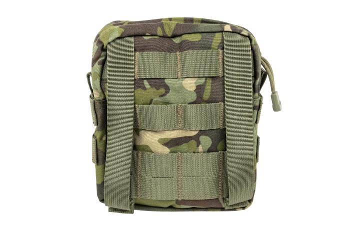 Unutarnji sloj s gumiranom oblogom osigurava otpornost na vodu, dok prednja strana prekrivena MOLLE mrežom omogućuje pričvršćivanje dodatne opreme.