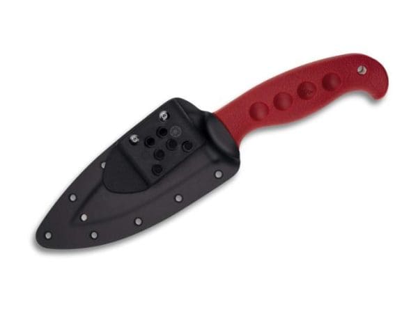 FRN drška svijetlocrvene boje jasno označava nož kao isključivo trening alat, smanjujući mogućnost zabune tijekom vježbanja. Spyderco Temperance Trainer trening nož dolazi s čvrstom plastičnom futrolom koja osigurava sigurno nošenje i skladištenje.