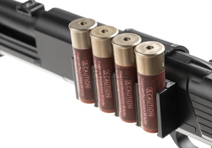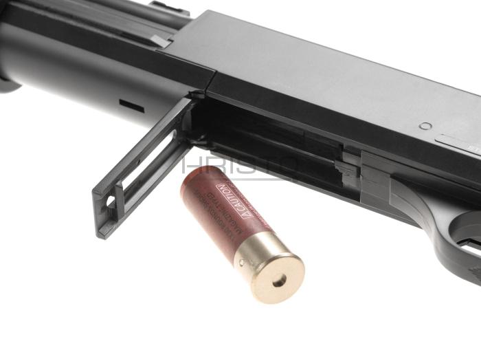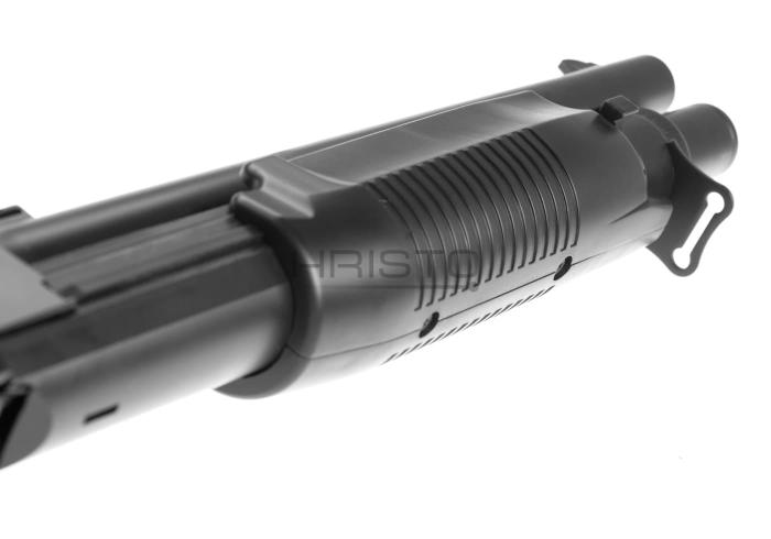 Ručni pump-action mehanizam pruža realističan osjećaj i čvrstu kontrolu, dok skraćeno kućište omogućuje lako manevriranje u zatvorenim prostorima. Replika koristi realistične školjke (shells) koje se pune s 30 kuglica – do 10 hitaca po jednoj školjki. Izrađena je od čvrste ABS plastike i metalnih unutarnjih komponenti za optimalnu izdržljivost.