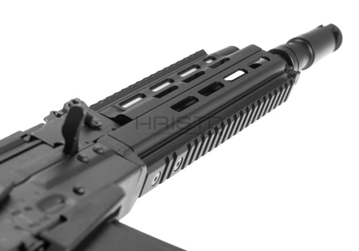Ova airsoft replika duljine 877 do 960 milimetara koristi standardni spremnik AK formata, teži 3700 grama i podržava poluautomatski i automatski način paljbe