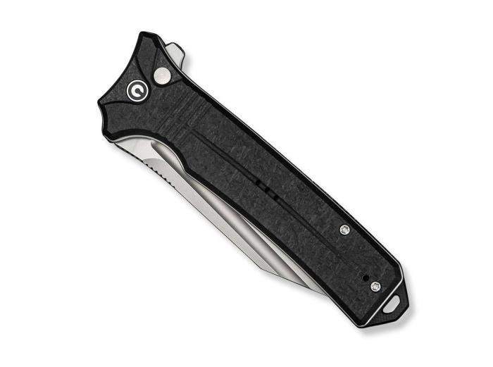 Teksturirana drška izrađena od crnog Shredded G10 materijala osigurava siguran i stabilan hvat, čak i u zahtjevnim uvjetima. Dodatne značajke uključuju otvor za vezicu i reverzibilnu tip-up kvačicu za džep, omogućujući prilagodbu za desnoruke i ljevoruke korisnike.