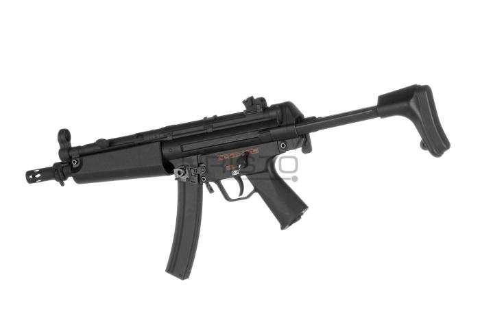 Izrađena od visokokvalitetnog aluminija i ABS polimera, ova 580/735 mm duga SMG replika dolazi s klasičnim rukohvatom i metalnim spremnikom velikog kapaciteta. Svojim kompaktnim dimenzijama, PM5J je izuzetno praktičan za kretanje u skučenim prostorima ili kao sekundarno oružje snajperistima na terenu.