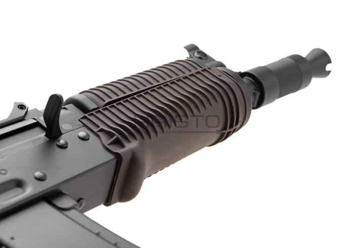 Jedini vanjski dijelovi izrađeni od polimera su pištoljski rukohvat, rukohvat i spremnik. Zahvaljujući preklopnom kundaku na lijevu stranu, replika se lako prenosi i sprema. Na lijevoj strani tijela nalazi se bočna AK montaža (dovetail šina) za postavljanje optike.