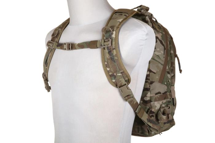 Izrađen od izdržljivog najlona, ovo je mali jurišni ruksak. U glavnom pretincu nalaze se mali džepovi sa strane. Na vanjskoj strani ruksaka nalazi se plosnati džep sa čičkom, kojem se može pristupiti s obje strane. Na slobodnoj površini ruksaka našiveni su MOLLE trake i čičak paneli na koje možete postaviti, primjerice, oznaku sa motivacijskom porukom.