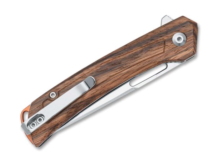 POŠALJITE UPITThe BlackFox Sneaky really gets to grips with stubborn packaging, cardboard boxes or ropes. Equipped with a satin-finished D2 blade with flipper and thumb hole backing, everyday cutting tasks are a breeze. The dynamic performance is seamlessly transferred to the slim lines of the pocket knife. Zebrawood handle scales and the liner lock combine aesthetics with reliability. With lanyard hole and tip-up clip (r).