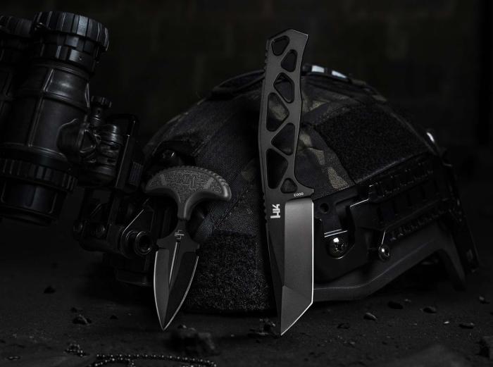 Heckler & Koch FX02 fiksni nož kompaktan je i klasično oblikovan push dagger, dizajniran kao krajnje rješenje za samoobranu u situacijama ekstremnog stresa i ograničenog vremena reakcije. Njegova dvostruko oštra oštrica izrađena je od D2 čelika poznatog po visokoj zadržanosti oštrine, a crni titanijski premaz smanjuje refleksiju i povećava otpornost na koroziju.
