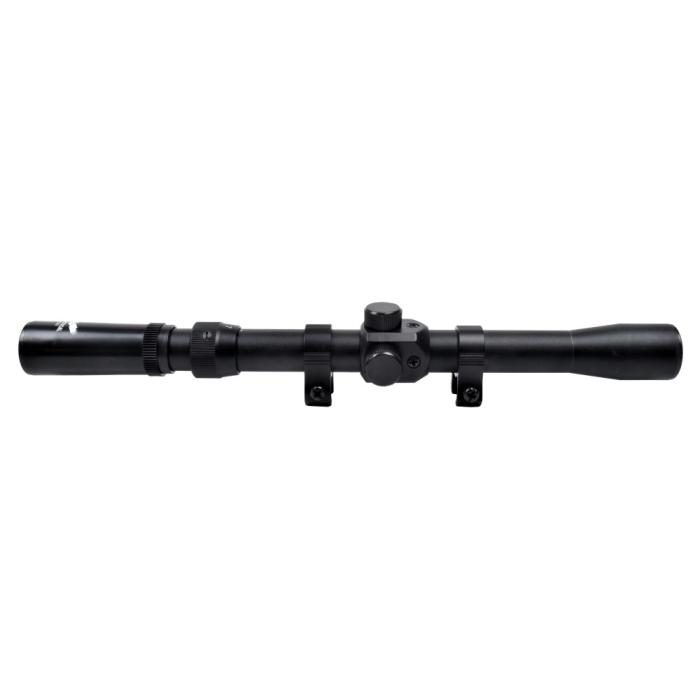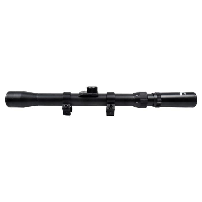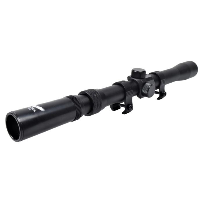 Opremljen je klasičnim križnim končanikom bez osvjetljenja, a dolazi u paketu s niskim prstenovima za montažu na 11 mm šinu, što ga čini idealnim za zračno oružje i samostrele s manjom visinom montaže.