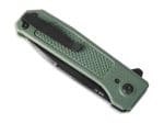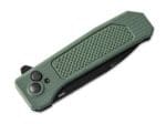 Dekorativni ricasso dodaje estetsku notu, dok ergonomska drška izrađena od zelenog G10 materijala osigurava siguran i neklizajući hvat u svim uvjetima.