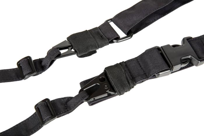 Remen se montira pomoću metalnih karabinera ili priloženih najlonskih traka, što omogućava prilagodbu različitim modelima oružja.