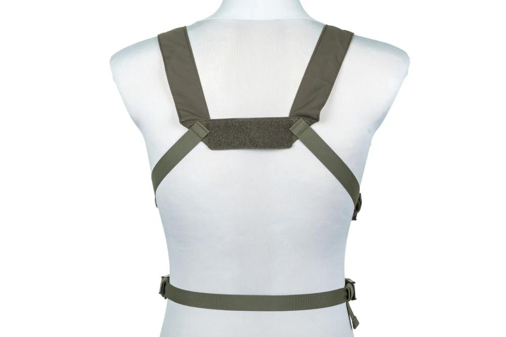 Kroj: ergonomski, lagan chest rig, dizajniran da pruži dobru pokretljivost trupa i minimalno opterećenje ramena i leđa.