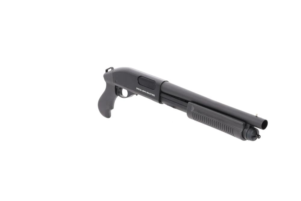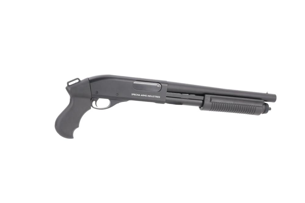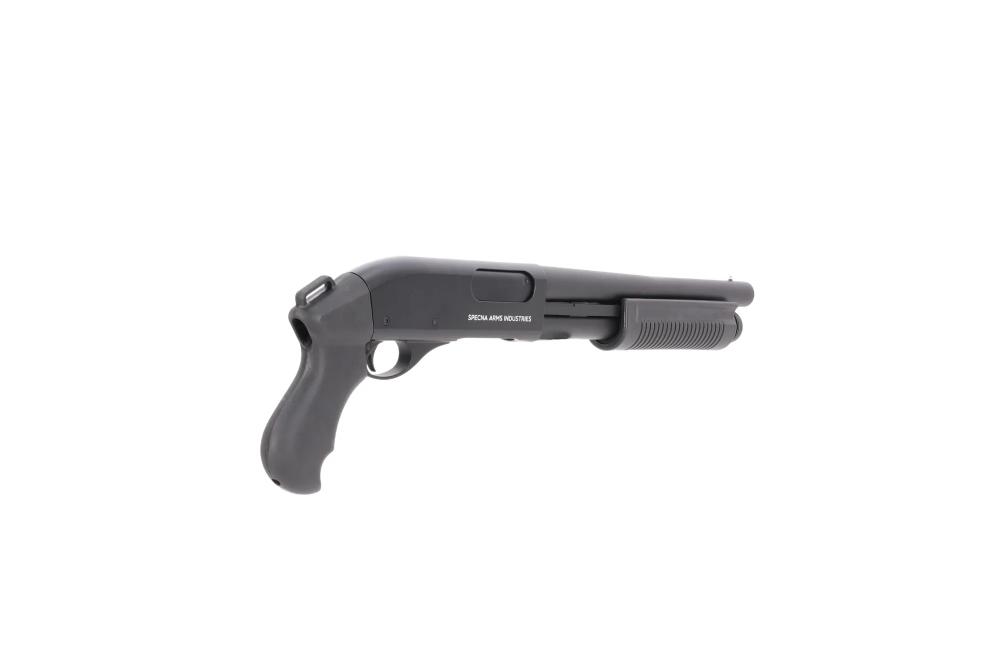 POŠALJITE UPITSpecna Arms SA-VGS17 VAPOR™ Black airsoft sačmarica je kompaktna, stockless plinska “pump-action” replika, zamišljena za igrače koji žele kratko, vrlo pokretljivo oružje za agresivan CQB u hodnicima, stubištima i uskim prostorima.