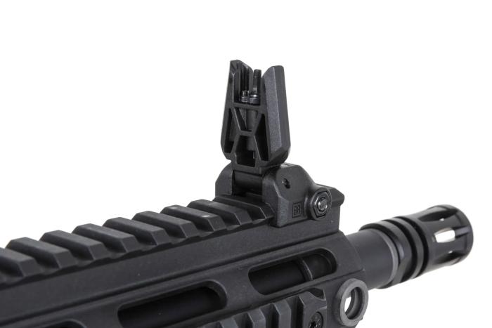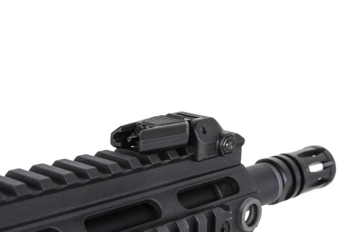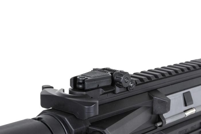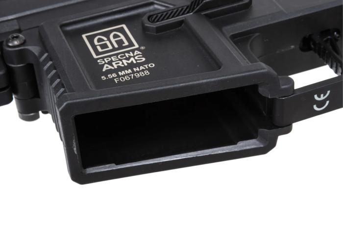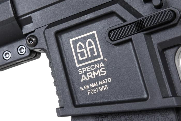 Cijev je Specna Arms vlastiti dizajn koji kombinira estetiku i ergonomiju – svaki je element pažljivo izrađen i precizno uklopljen. Model ima povećane kontrole s obje strane (selektor i otpuštač spremnika) te funkcionalan bolt-catch