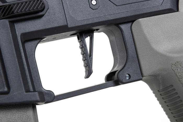 tvornički ugrađeni HAL™ ETU Gen.2 modul s detekcijom okidača putem magnetskih senzora i Hall efekta, aktivnom kočnicom, binary trigger funkcijom, podesivom osjetljivošću okidača i programabilnim načinima paljbe
