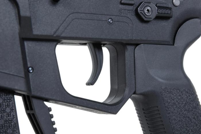 Karabinek dolazi tvornički opremljen MOSFET-om GATE X-ASR — rezultat suradnje Specna Arms i poljskog proizvođača GATE. Ovaj visokokvalitetni MOSFET povećava sigurnost elektroničkih komponenti, poboljšava odziv okidača, produžuje vijek baterije i olakšava dijagnostiku osnovnih kvarova zahvaljujući ugrađenim LED indikatorima.