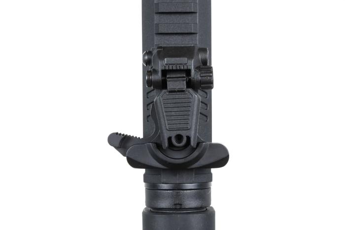Light Ops kundak je minimalistički, lagan i praktičan: produžni kundak ima gumene anti-slip naljepnice na obrazima i karakterističnu zaobljenu gumenu potkončinu koja udobno leži na ramenu.