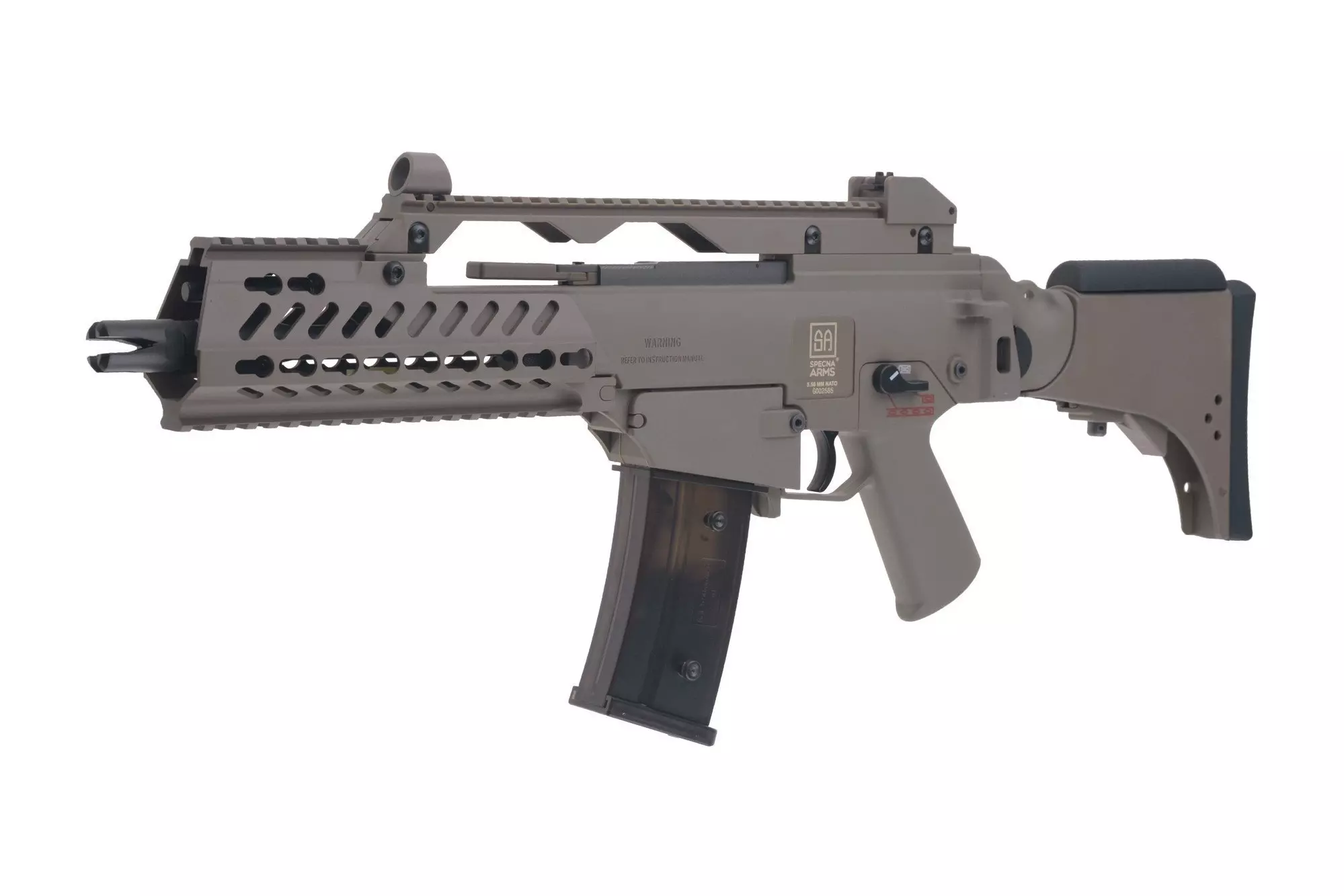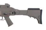 Kao i original, airsoft replika Specna Arms SA-G11V KeyMod EBB TAN AEG airsoft replika izrađena je od vrlo izdržljivog polimera, metala te čelika na najkritičnijim mjestima (svi vijci, osovine i nosač taktičkog remena izrađeni su od čelika). Replika je opremljena 22 mm RIS šinom sprijeda (gore i dolje) kao i KeyMod nosačima sa strana. Prednji rukohvat također sadrži bateriju.