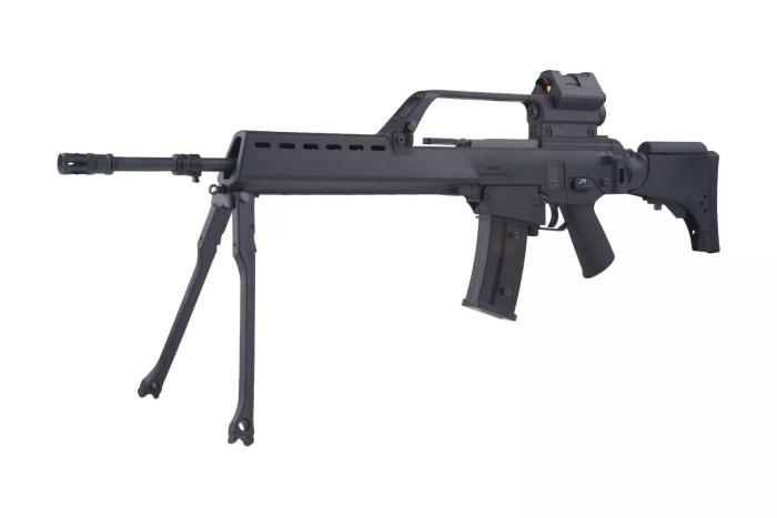 Poznati airsoft brend Specna Arms predstavlja seriju SA-G — replike koje svojom razinom izrade izravno konkuriraju modelima vrhunskih proizvođača. Specna Arms SA-G13V EBB BK AEG airsoft replika donosi robusnu konstrukciju, praktične taktičke elemente i tvorničke značajke koje omogućuju igru odmah po raspakiranju. Prednji rukohvat s integriranim pretincem za bateriju, podesivi preklopni kundak i tvornička EBB funkcija čine ovu repliku vrlo svestranom za CQB i igre na srednjim udaljenostima. Umjeren komercijalni ton: izdržljiva, realistična i spremna za nadogradnje.