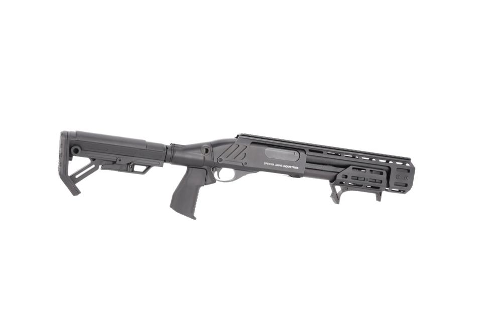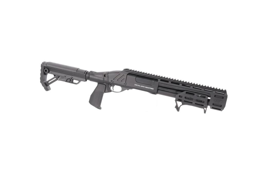 POŠALJITE UPITSpecna Arms SA-VGS1 VAPOR™ airsoft Shotgun Black je kompaktna, plinskom pogonom napajana “pump-action” sačmarica, zamišljena za dinamičnu CQB igru u skučenim prostorima i za igrače koji traže realističan rad repetiranja, pouzdanost i puno mogućnosti nadogradnje.