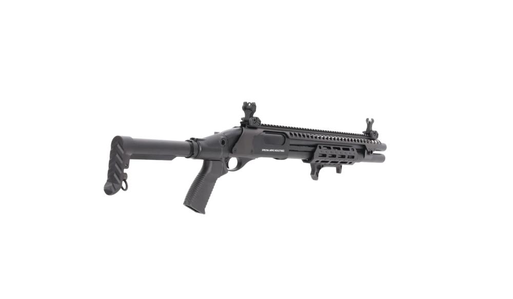 POŠALJITE UPITSpecna Arms SA-VGS9 VAPOR™ airsoft Rifle Black je taktička, plinskom pogonom napajana “pump-action” sačmarica, razvijena za brze i zahtjevne airsoft mečeve u kojima su pouzdanost, ergonomija i brz rad pod pritiskom ključni. Kombinira masivnu metalnu konstrukciju, moderan VAPOR plinski sustav i integrirani nosač patrona, što je čini vrlo privlačnom opcijom za agresivan CQB i taktičke scenarije.