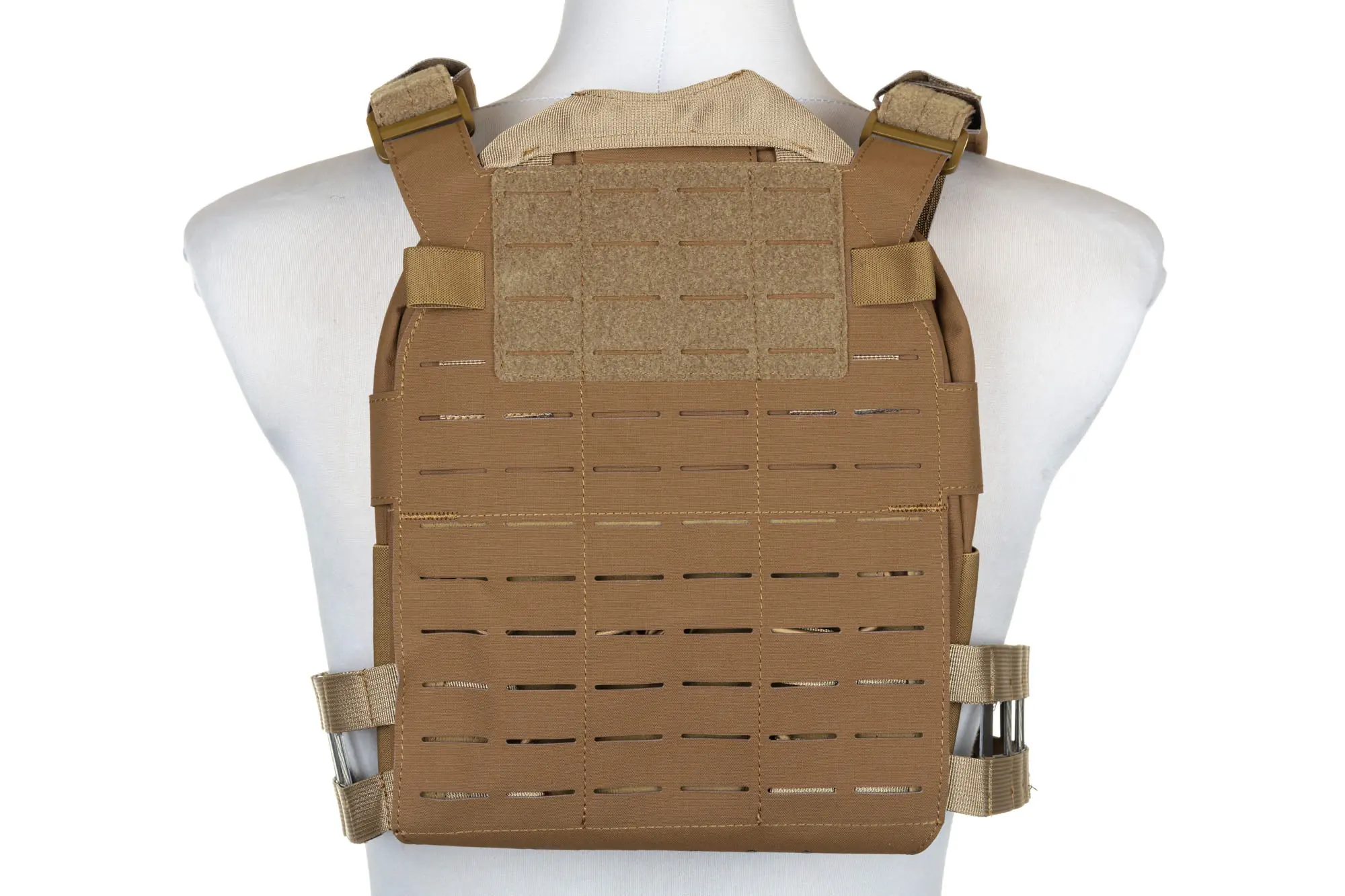 Stražnja strana s laserski rezanim MOLLE Laser-Cut sustavom – smanjuje masu prsluka, a zadržava punu modularnost i mogućnost nadogradnje.