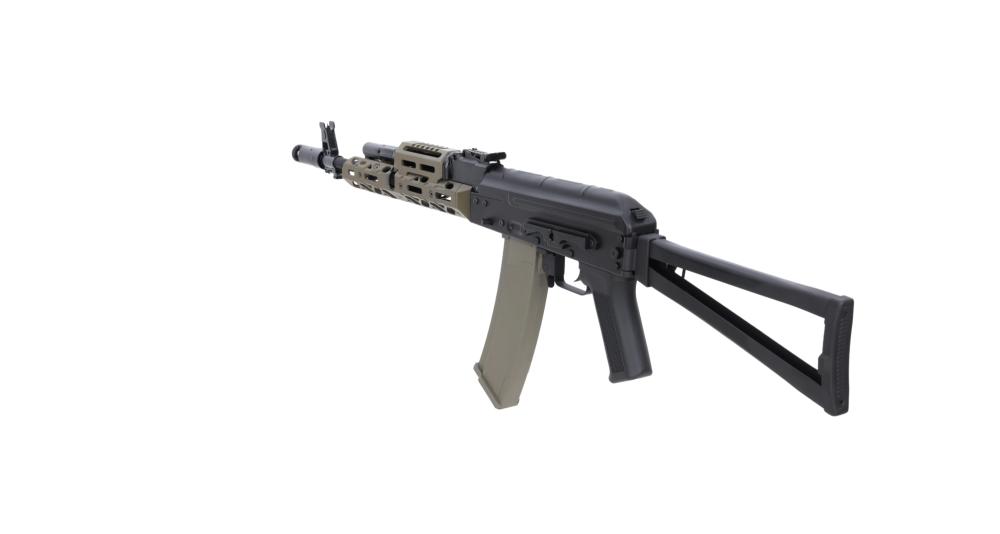 POŠALJITE UPITSpecna Arms x KPYK SA-PJ13 PRIME™ Aster ETU BLDC™ OD AEG airsoft replika je premium AK-platforma razvijena u suradnji Specna Armsa i ukrajinskog KPYK-a, zamišljena kao izdržljiva, tvornički “pretjunirana” replika spremna za ozbiljnu igru bez dodatnih modifikacija. Konstrukcijski se oslanja na čelično tijelo i čelični preklopni kundak, aluminijski KPYK M-LOK rukohvat i modernu elektroniku (GATE Aster V3 + DarkMatter™ brushless motor), što joj daje realističnu masu, odličnu ergonomiju i vrlo brz odziv okidača.