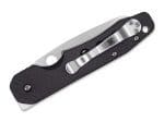 Drška je izrađena od čeličnih unutarnjih obloga s izrezima kako bi se smanjila masa, dok su vanjske obloge izrađene od G10 karbonskog laminata, kombinirajući čvrstoću, lakoću i atraktivan izgled. Kvačica za džep omogućuje tip-up nošenje na desnoj strani, uz mogućnost uklanjanja za još veću prilagodljivost korisniku.