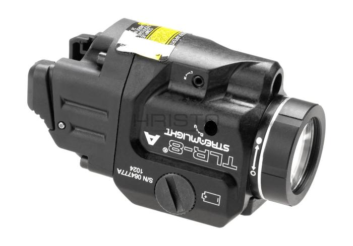 Streamlight TLR-8A Flex Black je taktička svjetiljka s fleksibilnim stalkom, namijenjena montaži na pištolje s Picatinny ili Glock Rail sustavima. Opremljena je snažnim LED izvorom svjetla s visokim lumenima i pruža maksimalnu fleksibilnost pozicioniranja svjetla zahvaljujući prilagodljivom stalku. Dizajniran je za pouzdanu i jednostavnu upotrebu u taktičkim uvjetima.
