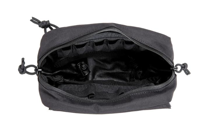 Izrađen od čvrstog najlona, otporan je na vlagu, habanje i intenzivnu terensku uporabu. Integrirani MOLLE sustav i kopče omogućuju stabilno pričvršćivanje na većinu modernih taktičkih prsluka. Niski profil i crna boja omogućuju lako uklapanje u različite uniformne konfiguracije i urbane scenarije.
