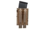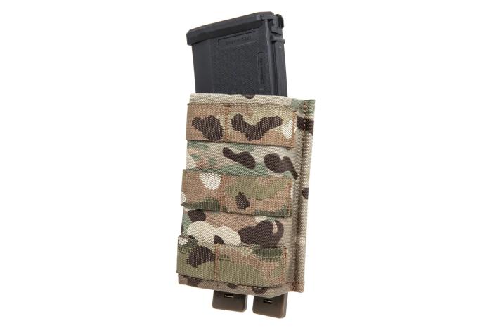 Izrađen od otporne tkanine s MultiCam uzorkom, savršeno se uklapa u razna terenska i šumska okruženja. Unutrašnjost sadrži elastične umetke koji zadržavaju spremnik čvrsto na mjestu, dok MOLLE kompatibilnost omogućuje lako pričvršćivanje na prsluke, opasače ili torbe.