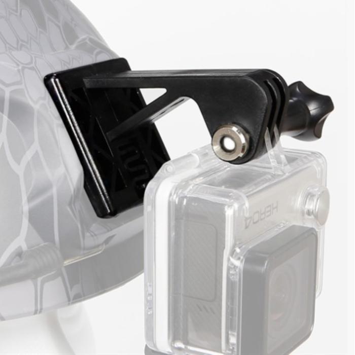 Wosport GoPro nosač za kacigu je prednji nosač dizajniran za postavljanje akcijskih kamera poput GoPro modela na vojne i airsoft kacige. Omogućuje brzo i sigurno montiranje kamere zahvaljujući sustavu brzog otpuštanja (fast release), što ga čini idealnim za snimanje tijekom airsofta. Kompatibilan je s većinom akcijskih kamera koje koriste standardni GoPro sustav montaže.